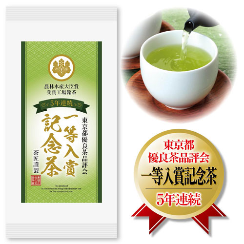 本品は、静岡県掛川市にある当店製茶工場が、「第53回 東京都優良茶品評会」にて、5年連続「一等入賞」を果たしたことを記念して、特別に製造した深蒸し煎茶です。